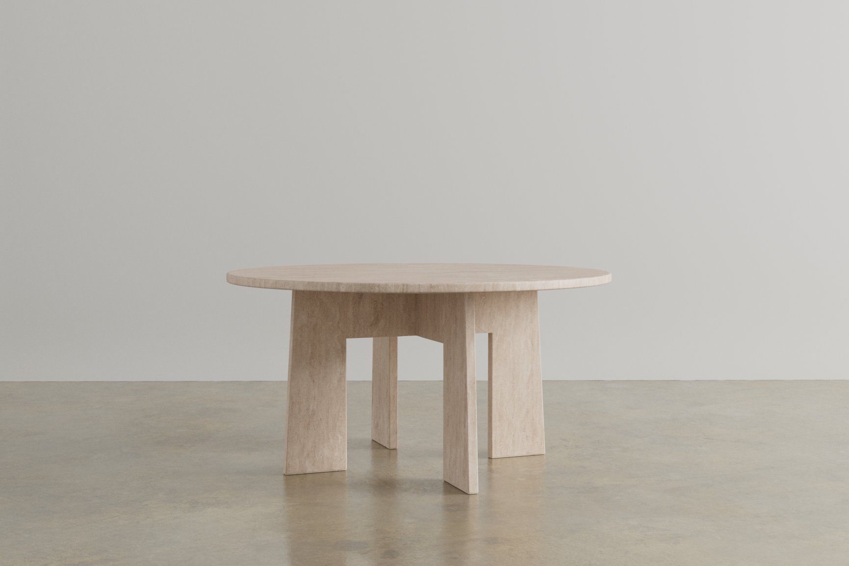 Built around a simple structural idea. A round top rests on four solid legs, evenly spaced to provide stability and clear legroom. The design focuses on proportion and material rather than detail, resulting in a table that feels solid and balanced
